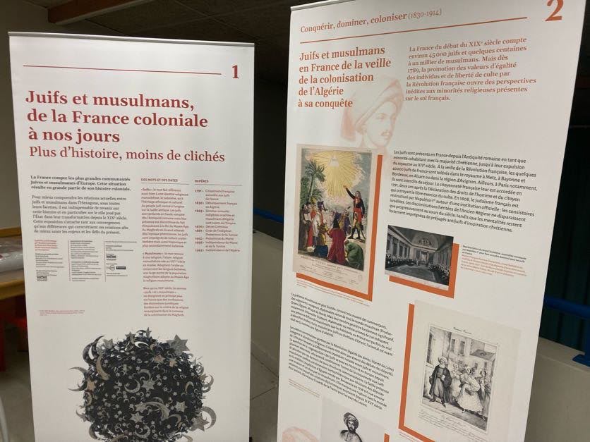 En parallèle, une exposition intitulée « Juifs et musulmans de la France coloniale à nos jours » a été installée à la mezzanine du lycée. Elle invite les visiteurs à réfléchir à l’histoire commune de ces communautés.