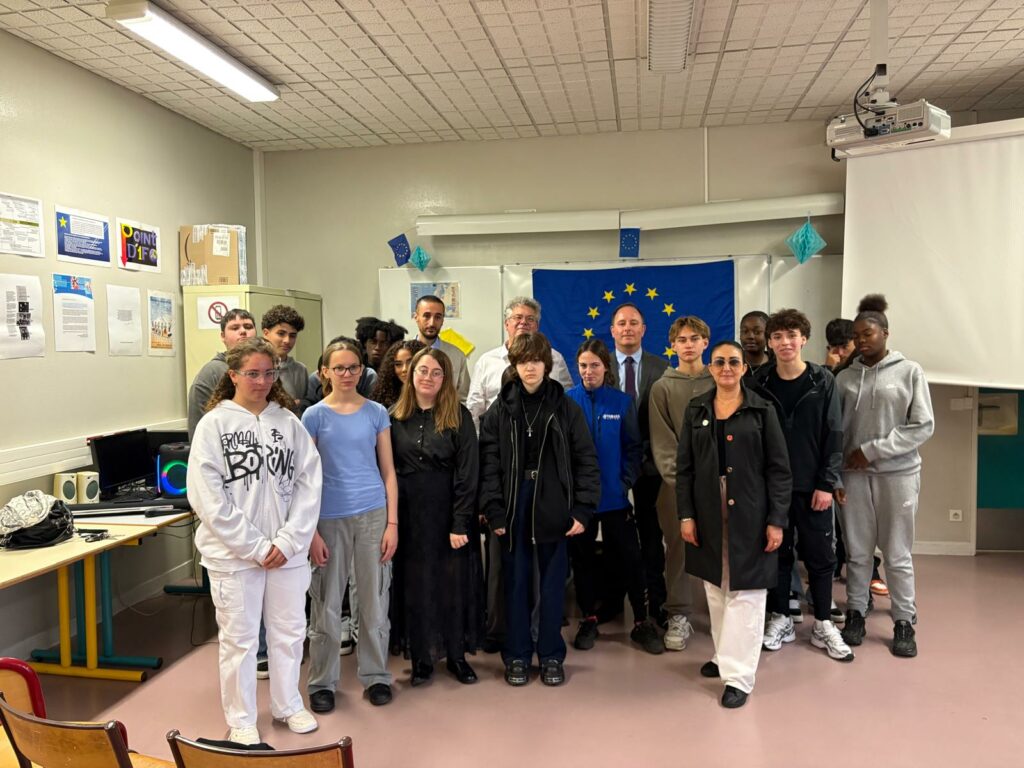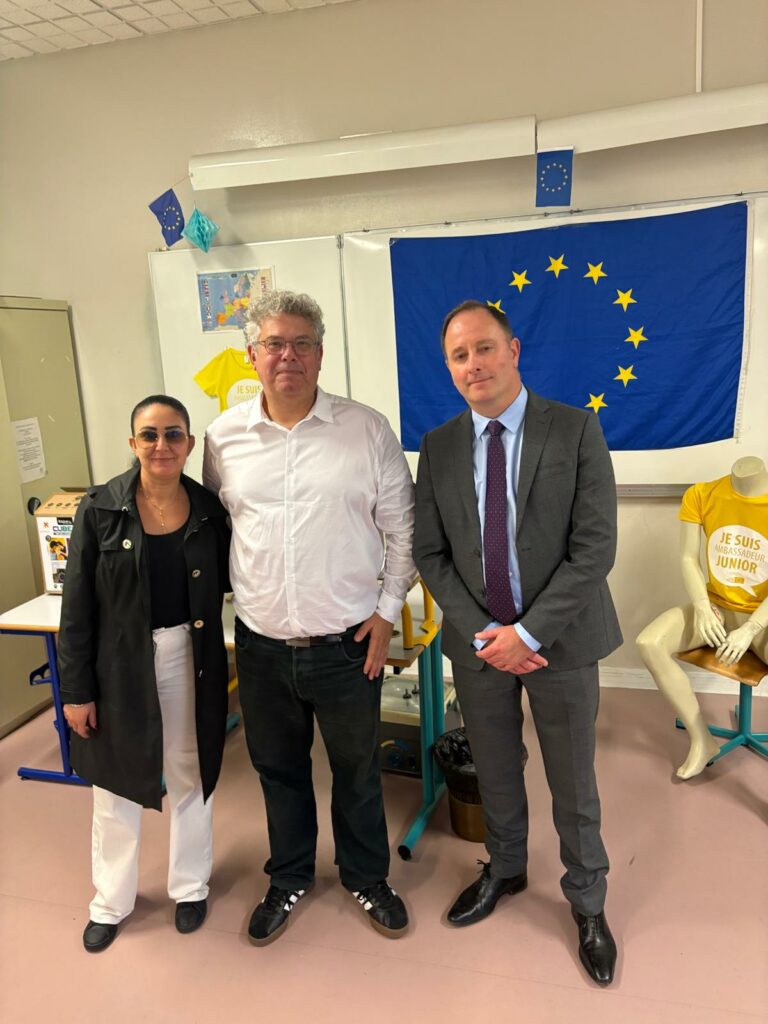 Lors de son intervention, il a sensibilisé les élèves à l’importance de la participation citoyenne dans l’Union européenne et a abordé des questions concrètes liées au droit du travail et aux valeurs européennes.